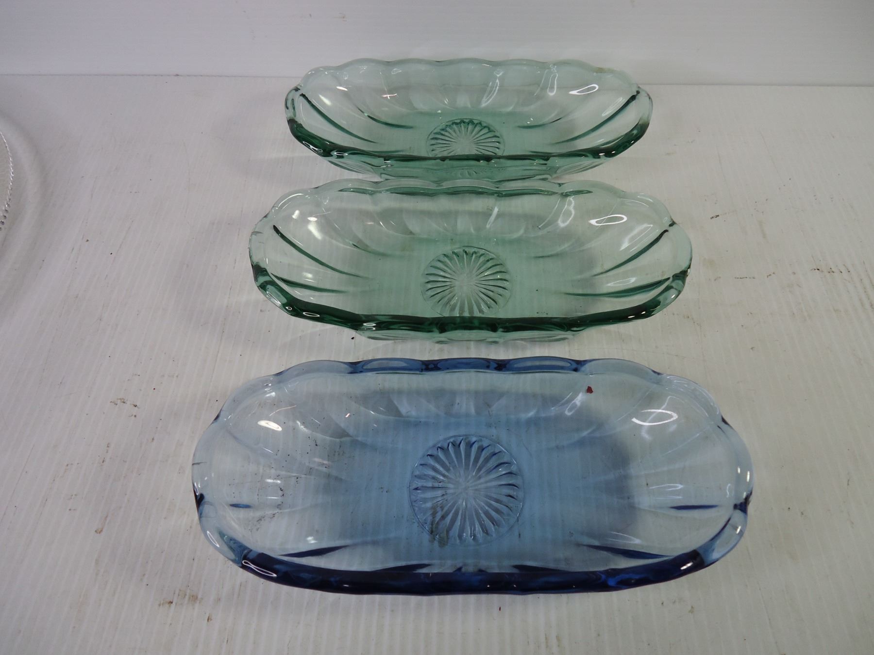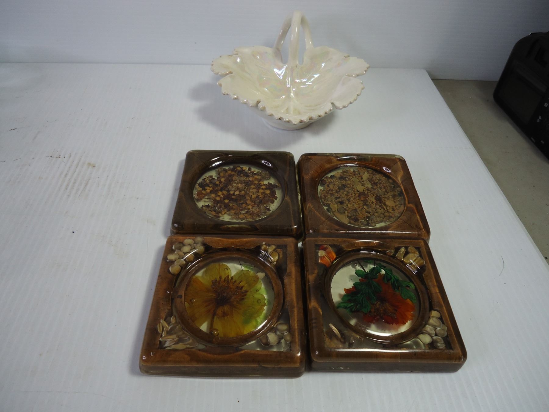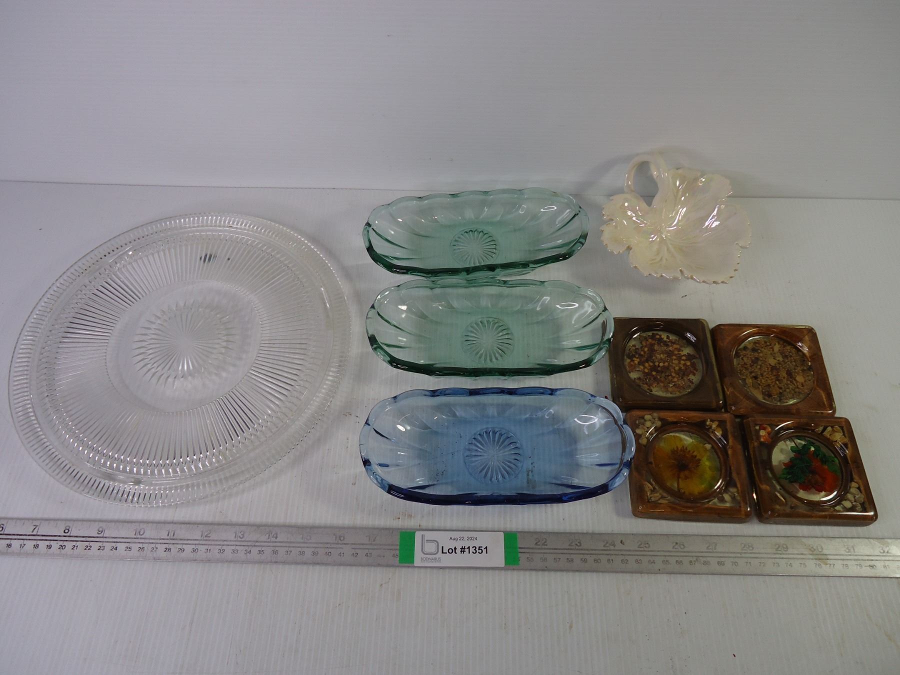 Footed Cake Plate (3) Candy Dishes, Trinket Dish and (4) Coasters