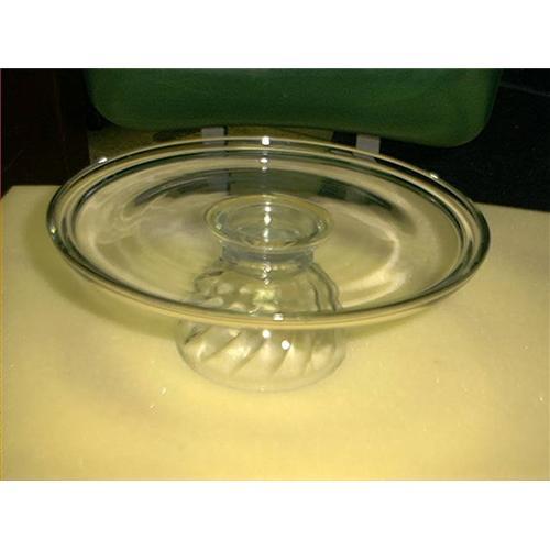 Footed Cake Plate Stand and it is signed, but cannot read it, as it has been used and still in very good condition, just cannot make out the name. It has a swirl bottom footed and the top has a great lip on it. It is a real nice older one and it seems to be in very nice condition. It is 11" Diam and base is 5" and it is 4" H. I see no chips or flakes or damage at all, and it is just a real nice old one, and shows some use. Still in very nice condition.Hope you like it.