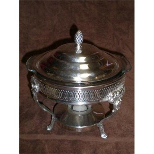 Footed Chafing Silver Plated Warmer Dish Kent Silversmiths. Was a wedding gift in 1984. Never used just placed in showcase for show. Enjoy</em></td>