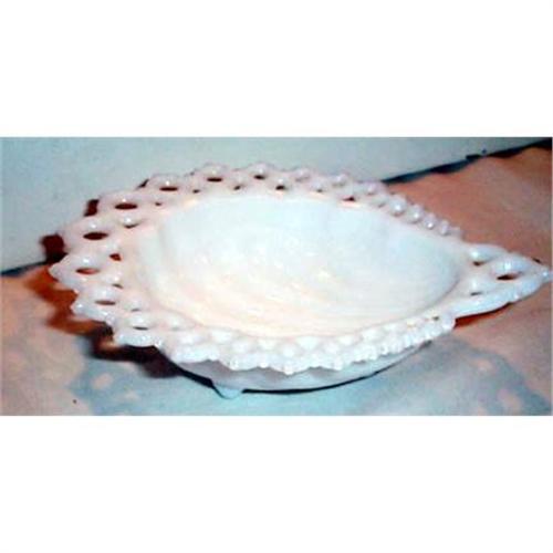 <tr><td>Title:Footed Milk Glass Reticulated Edge Soap Dish</td></tr>