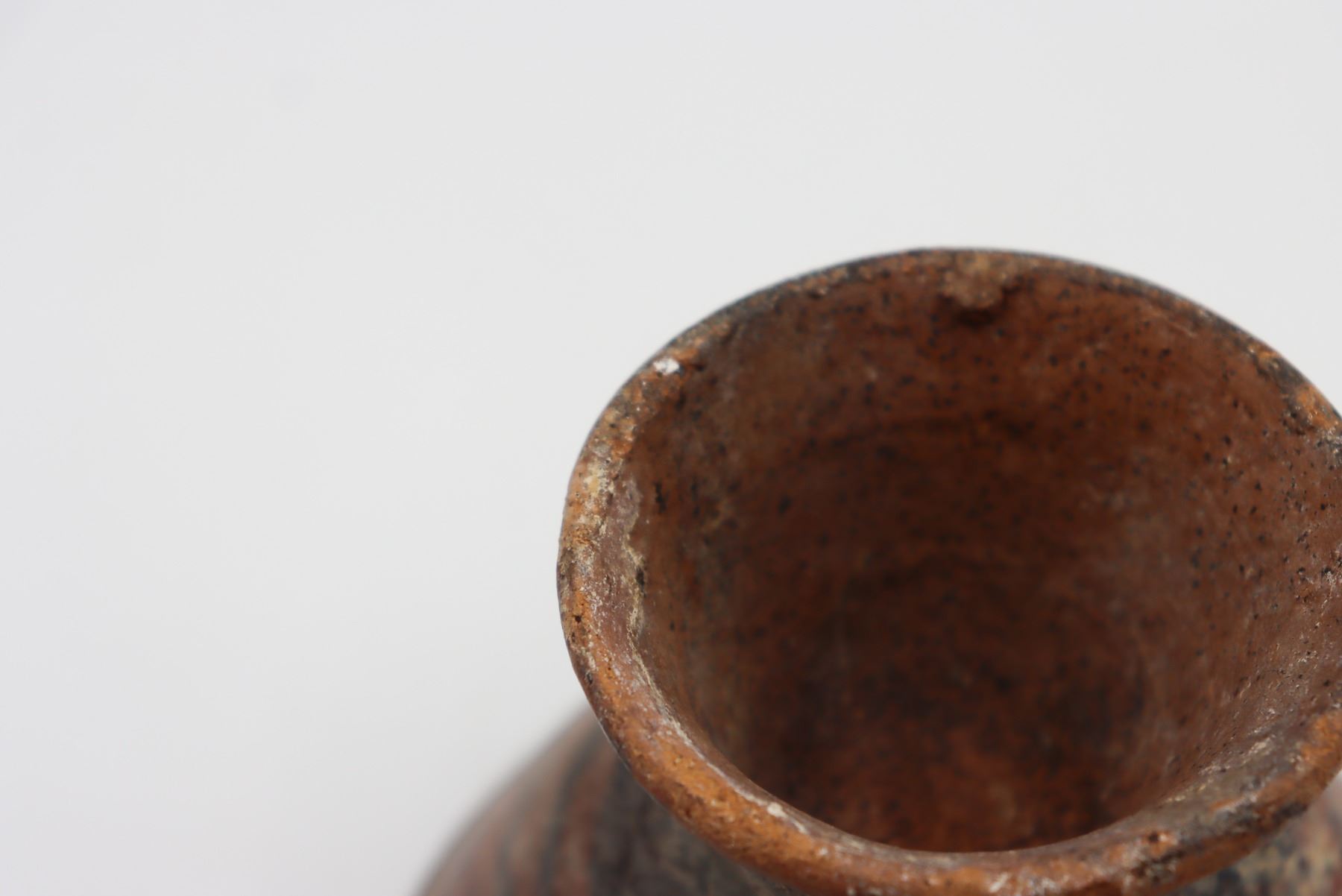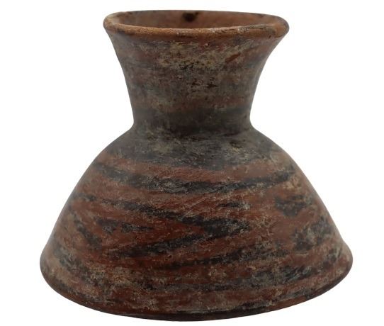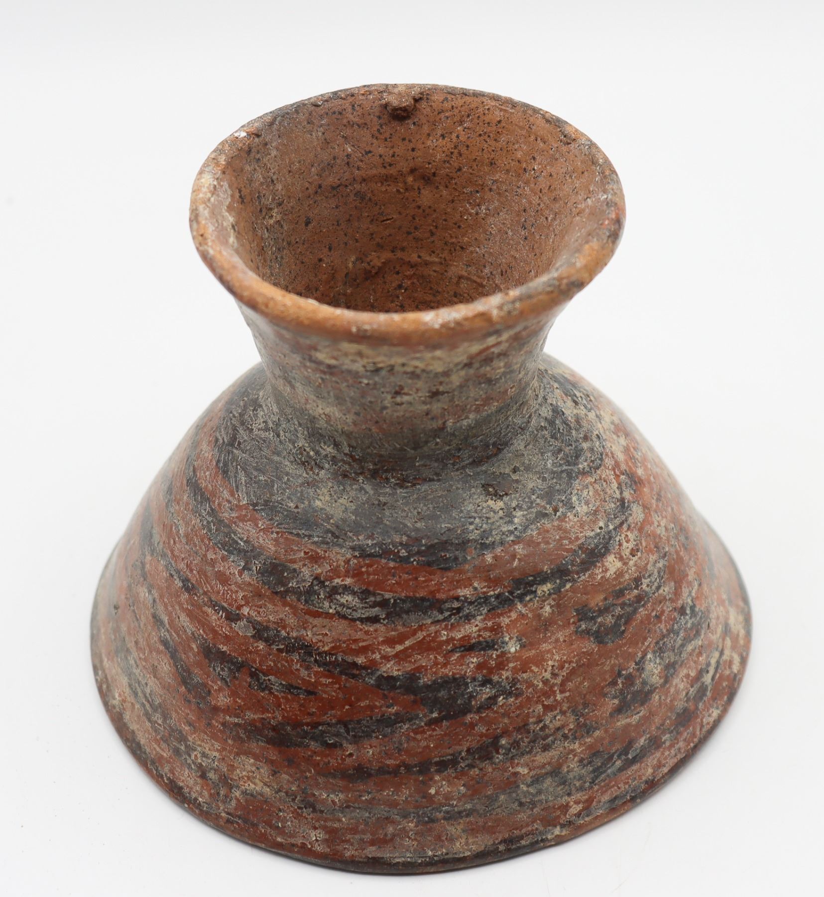 Rough fired ceramic, black slip design.