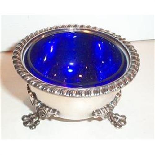 <tr><td>Title:Footed Silver Open Salt with Cobalt Glass</td></tr>