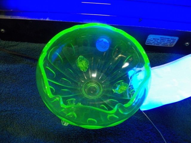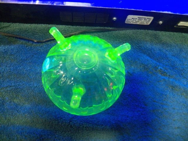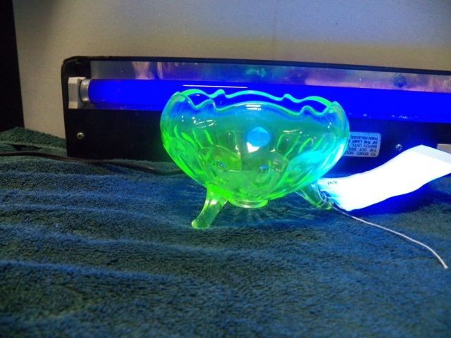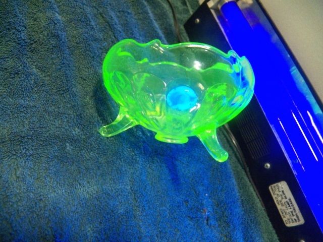 3-Footed Vaseline Bowl. Lights up very nice under blacklight. Approx 5" Round x 3" tall