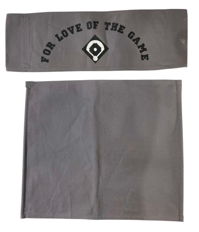 Original chairback and seat used by the cast on the production of the Sam Raimi directed sports drama film 'For Love of the Game (1999), which follows the perfect game performance of an aging star baseball pitcher as he deals with the pressures of pitching in Yankee Stadium in his final outing by calming himself with memories of a long-term relationship.