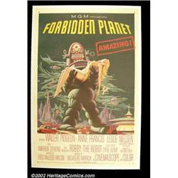 Forbidden Planet (Loews/MGM 1956) One Sheet (27"X 41") Many consider this to be one of the finest if not the finest science fiction film of the fifties. This poster needs no introduction for the collector. Very Fine on Linen. Important notice: We expect to be auctioning lots at the rate of 200-250 per hour. Sometimes eBay Premier live bid software cannot keep up with that pace, so we strongly recommend that you place a realistic proxy bid now as insurance to avoid disappointment. Also please note that all Heritage/CAA lots purchased through eBay Premier carry a 20% Buyer's Premium.