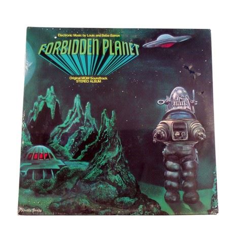 Forbidden Planet Original Planet Records Louis & Bebe Barron Soundtrack Album - A remarkable find! Besides the astonishing set design, effects, and of course, Robby The Robot, perhaps the most memorable thing about the all time Sci-Fi Classic, "Forbidden Planet" (1956) was the music. Producer Dore Schary wanted everything about this epic (since it was in fact based on Shakespeare's "The Tempest"), to be different than other Sci-Fi efforts, including the music. He rejected virtually all the standard composer's ideas. At his wits end he finally discovered a couple in a nightclub in Greenwich Village, New York. He heard some of their "far out" work using new electronic devices and hired them on the spot. "Forbidden Planet" thus became the first motion picture to use a total electronic score. This is made even more remarkable when you realize that synthesizer's (like the Moog), wouldn't be invented for almost ten years. A soundtrack album didn't really exist, so the composers, Louis and Bebe Barron created this Limited Edition from their own "Planet Records. In the original shrink wrap, the album itself is in mint condition having never been played. Very rare and highly sought after.