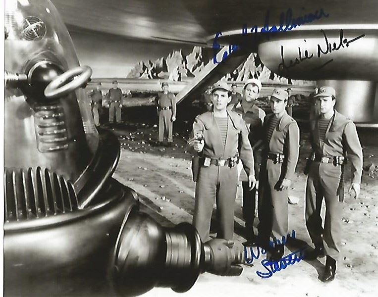 You are bidding on an 8x10 photo signed by Leslie Nielsen, Warren Stevens, and Earl Holliman. This item comes with a Certificate of Authenticity guaranteed for the life of the piece.