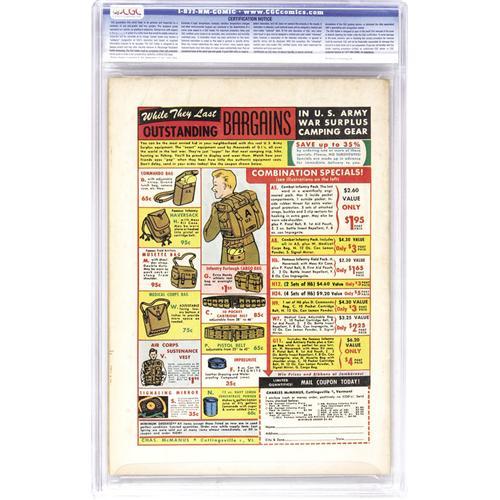 48C. COMICS – Comic books sold referencing a third-party grading service are sold "as is" without any express or implied warranty. Certain warranties may be available from the grading services and the Bidder is referred to them for further details: Comics Guaranty Corporation (CGC), P.O. Box 4738, Sarasota, FL 34230. Subject to sections 57 and 58, bidders who intend to challenge authenticity or provenance of a lot must notify Auctioneer in writing within thirty (30) days of the Auction's conclusion. Auctioneer's maximum liability shall not exceed the high bid on that lot, which bid shall be deemed for all purposes the value of the lot. In the event Auctioneer cannot deliver the lot or subsequently it is established that the lot lacks title, provenance, authenticity, or other transfer or condition issue is claimed, Auctioneer's liability shall be limited to recission of sale and refund of purchase price. After one year has elapsed, Auctioneer's maximum liability shall be limited to any commissions and fees Auctioneer earned on that lot.