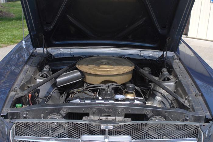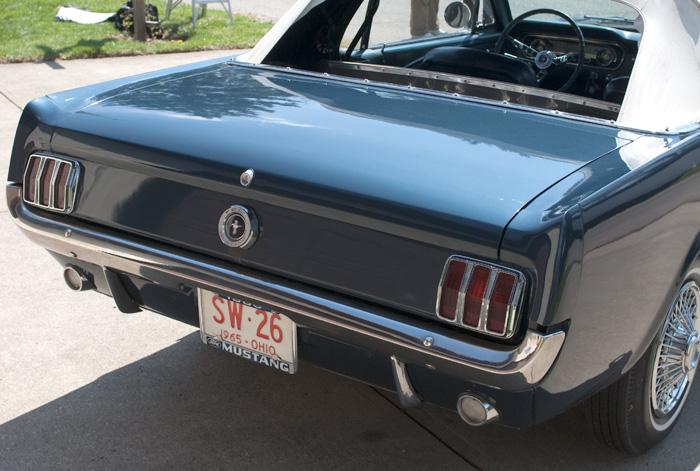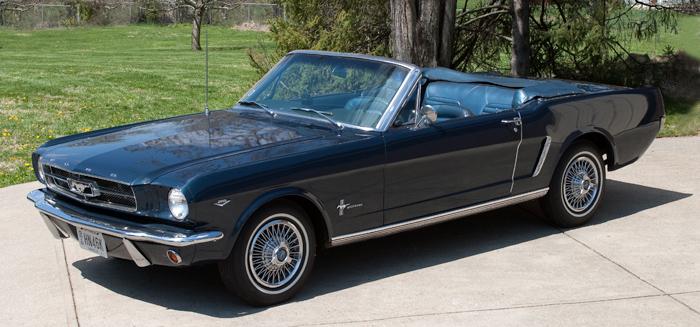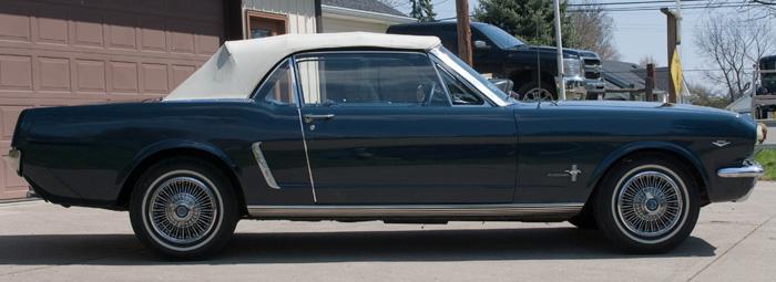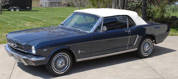 Vehicle #5F08C670152. Engine is "c" code 289-2bbl, with automatic transmission and power steering. Assembled at the Dearborn, Michigan Plant. In navy blue paint with chrome trim. Complete with good white vinyl convertible top and boot, an undercoated chassis, newer alternator, radiator and brake lines. Blue vinyl seats and blue carpet with Mustang floor mats. Original type wire styled wheel covers. Car comes with a 1965 Ohio license plate.