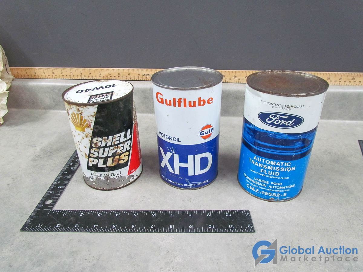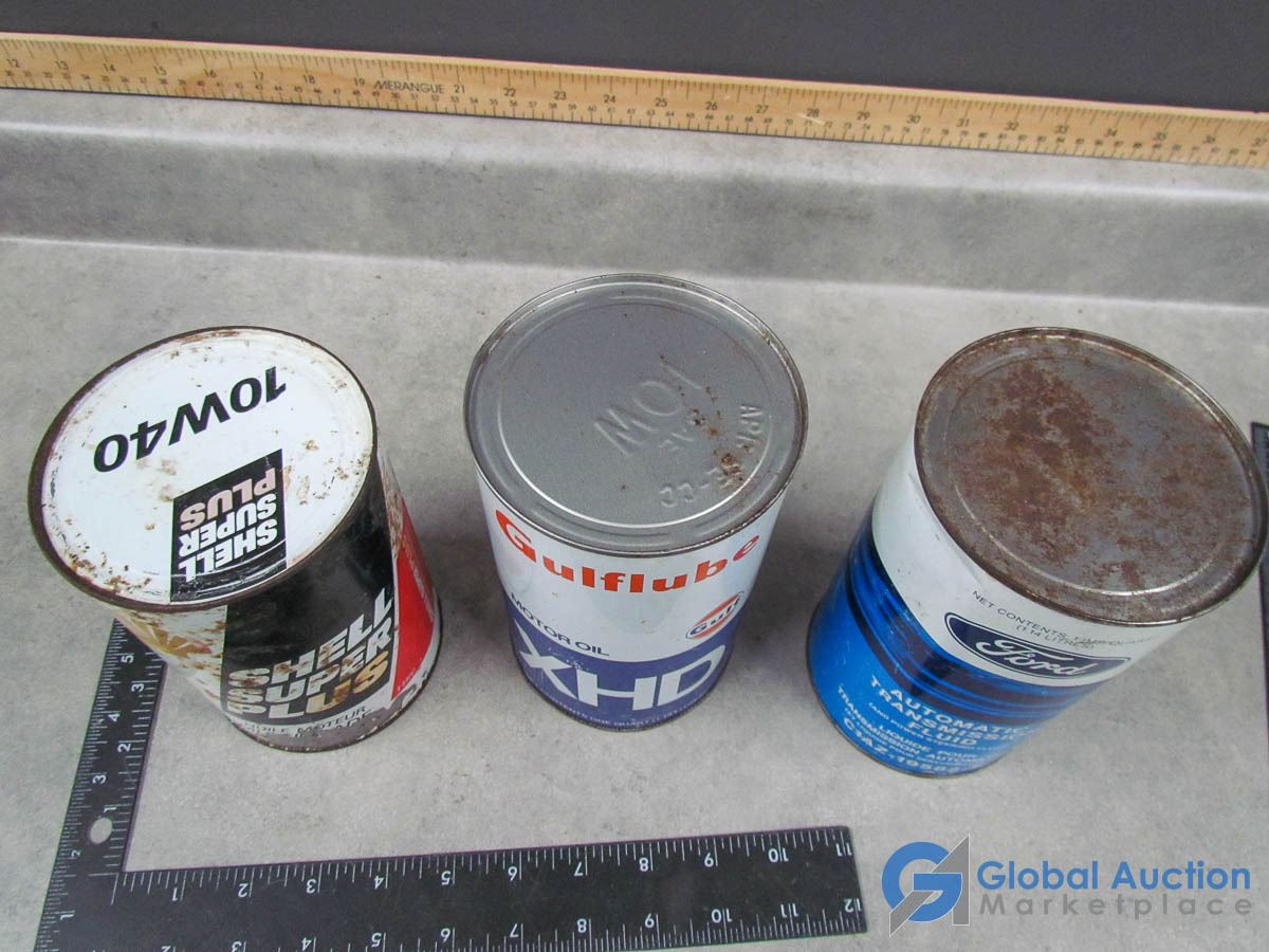 Ford Autotrans Can (full), Gulf Oil Can & Shell Oil Can