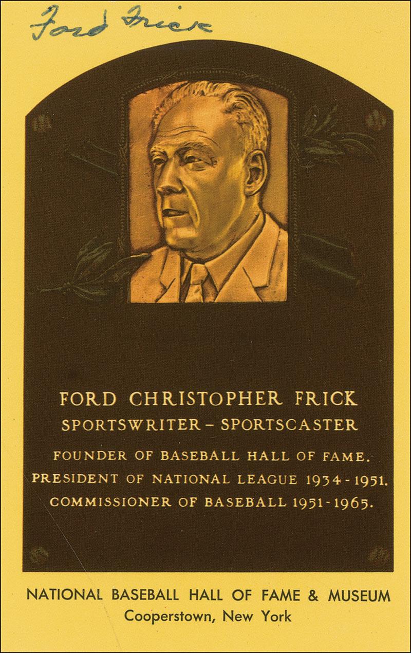 New York sportswriter and radio broadcaster, he served as National League president and commissioner of baseball and was elected to baseball’s Hall of Fame in 1969. Gold Hall of Fame plaque card signed across the top in blue ballpoint. In fine condition. Pre-certified Steve Grad/PSA/DNA and RRAuction COA.
