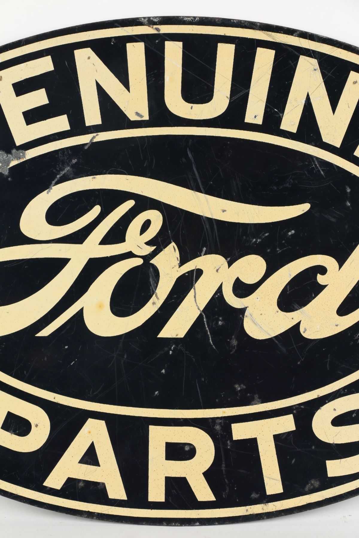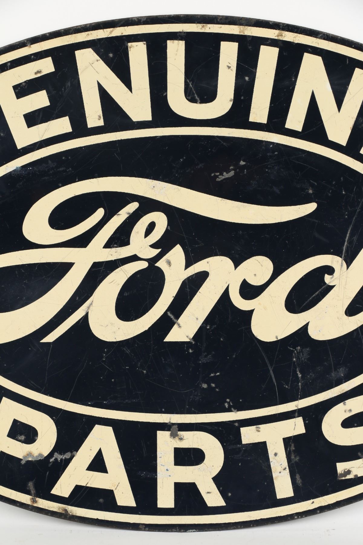 Circa 1940. 2-Sided. Heavy lithographed steel hanging sign. 16.5” x 23.75”. Scattered surface loss and oxidization. $600-800.