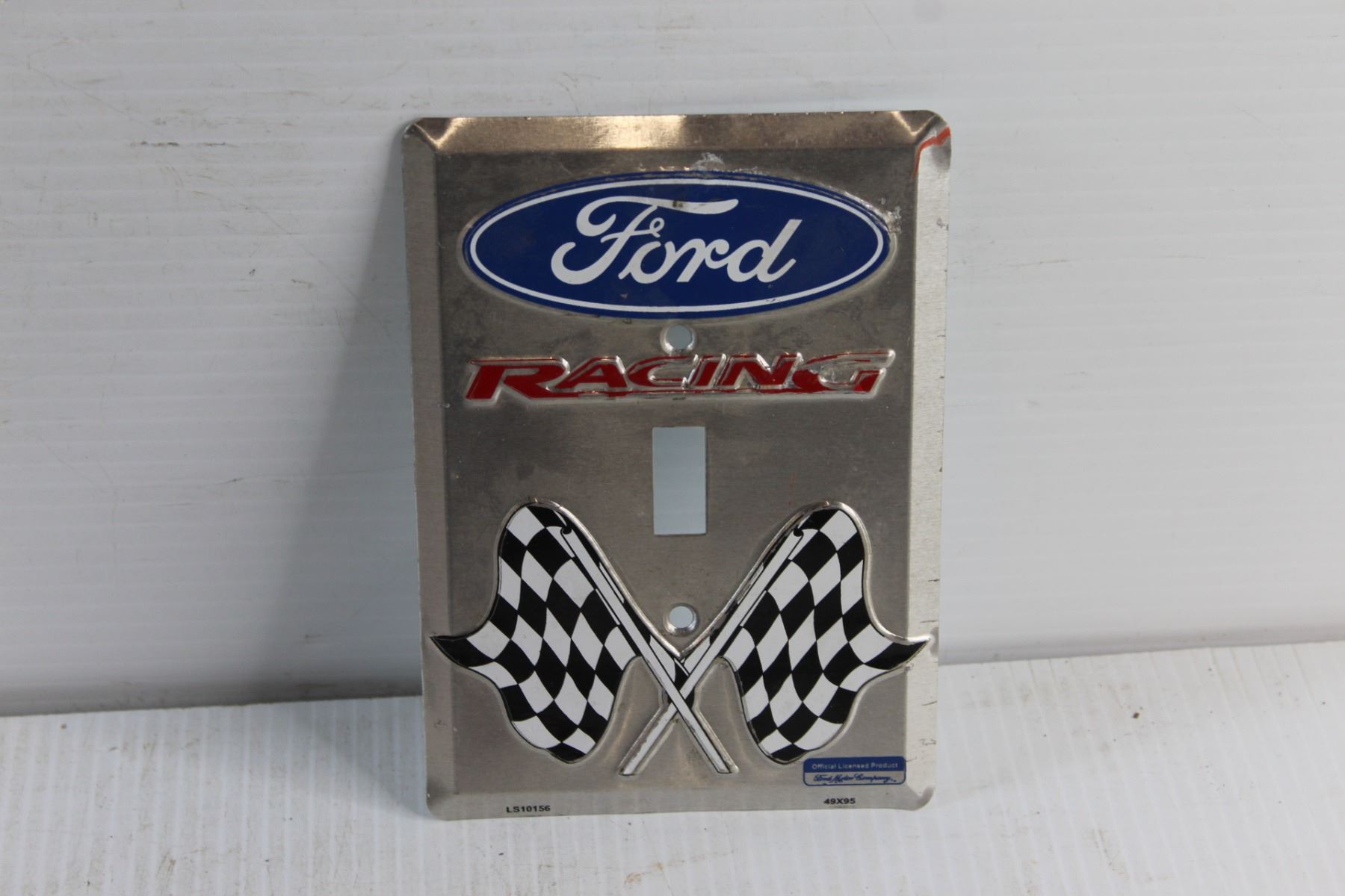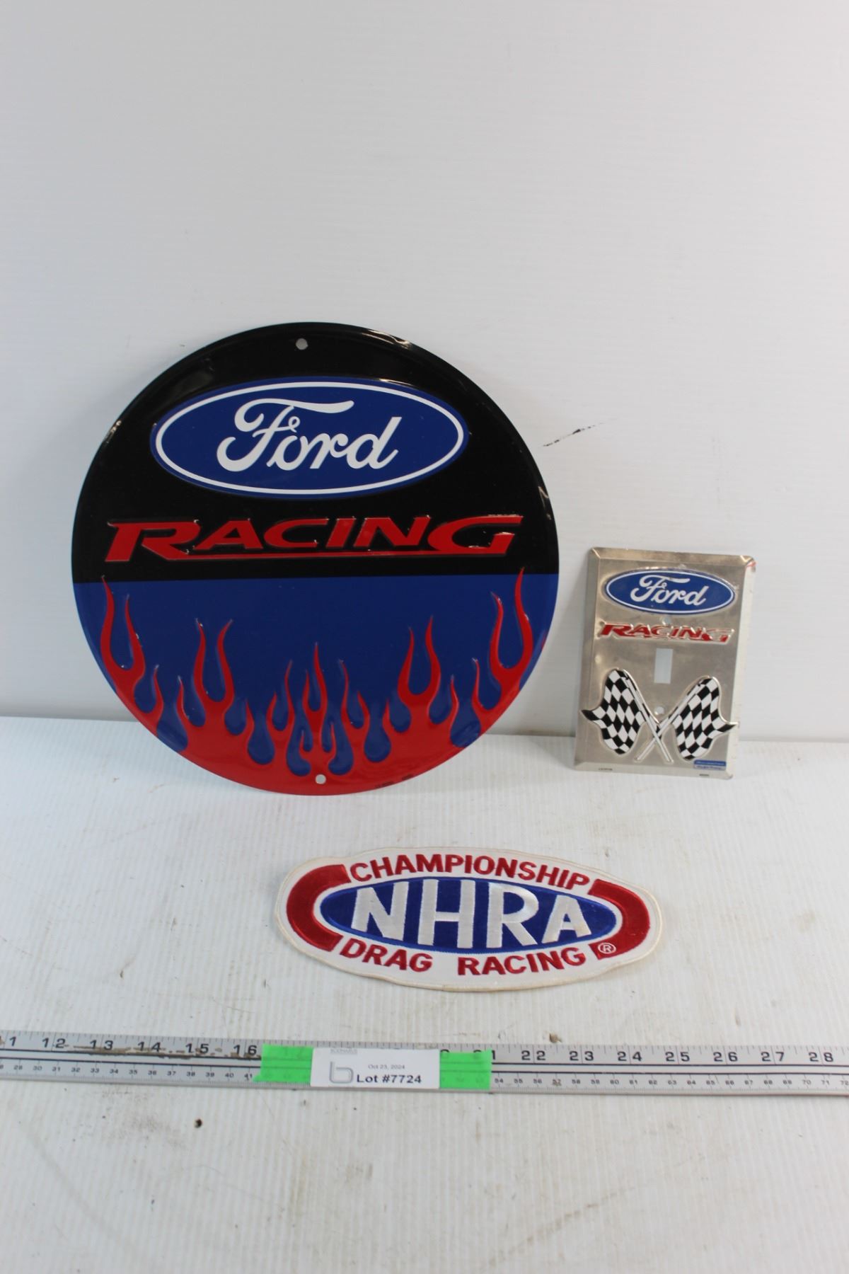 Ford Racing Sign 12'', Ford Racing Light Switch Cover and NHRA Drag Racing Patch
