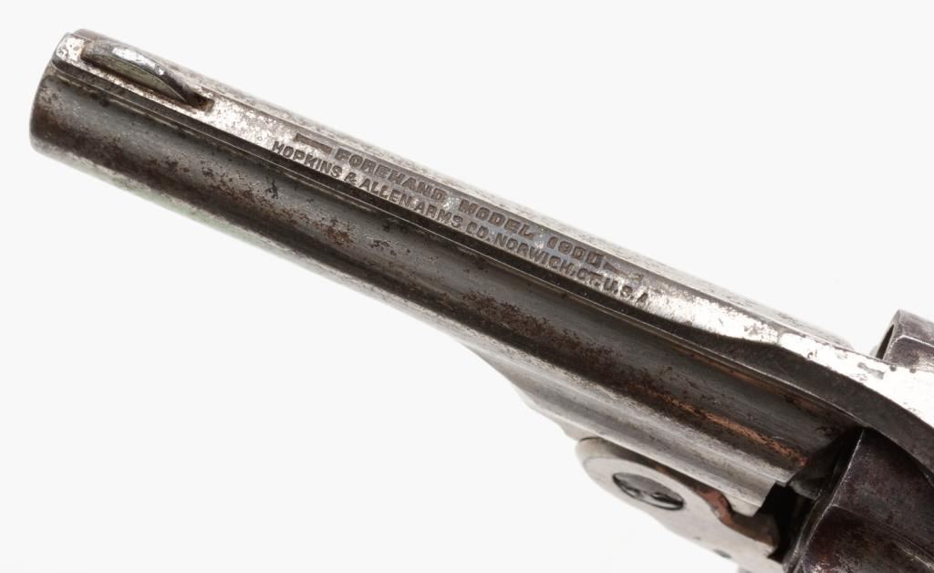 Forehand Model 1900 by Hopkins & Allen DA  top-break revolver, .32 cal., 3” barrel, nickel  finish,