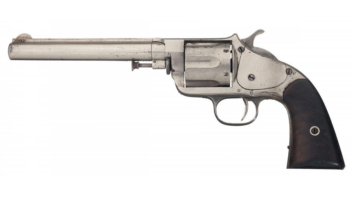 One of less than 1000 produced in the mid 1870s. Blade and notch sights, with "ADSWORTH, WORCESTER, MASS. U.S. PAT'D OCT. 22 '61 - JUNE 27 '71 - OCT. 28 '73+" on the top flat, with matching numbers on the barrel, butt, cylinder, and cylinder pin. Smooth two piece grips.