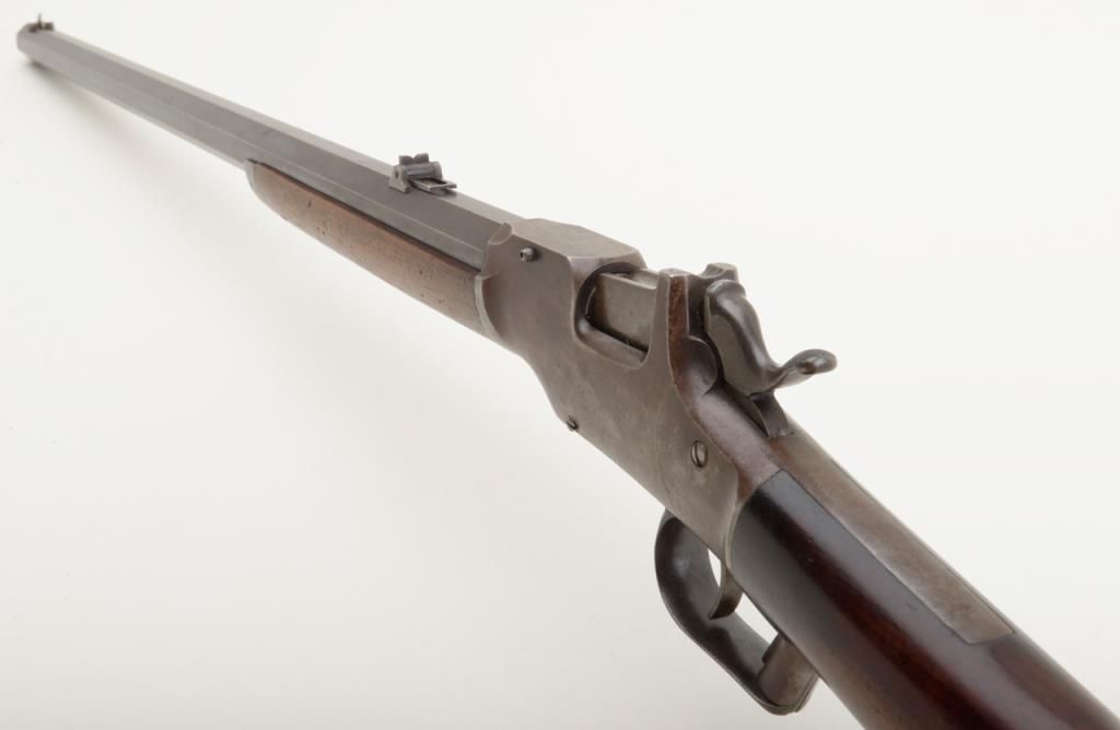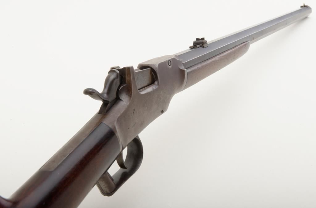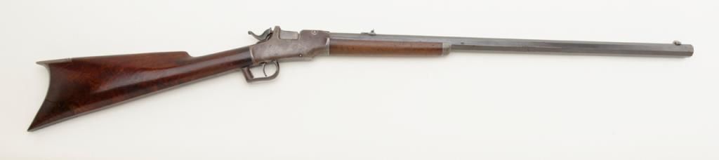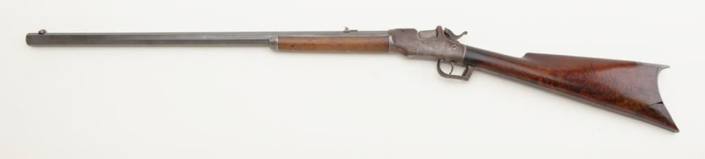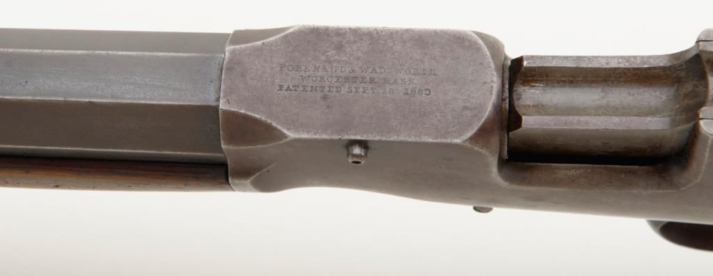 Forehand & Wadsworth falling block single shot rifle, .38 cal., 26” octagon barrel, blue finish, wood stocks, #NVSN in overall good condition showing muted blue finish on barrel with brown patina on receiver; good bore, action and markings; wood stocks overall very good with old repair to the bottom toe of the butt stock. (Antique). Est.: $250-$500.