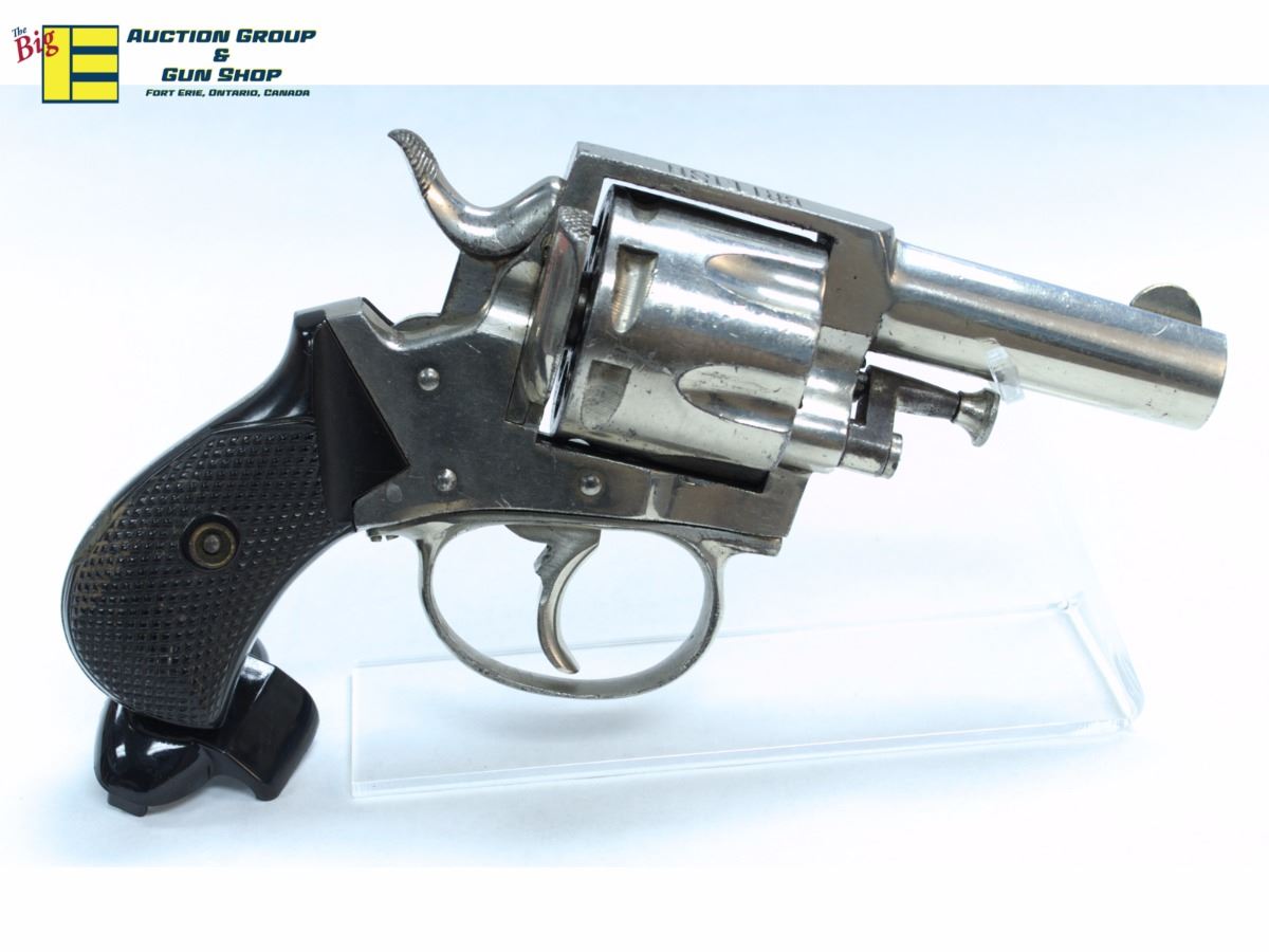 FOREHAND & WADSWORTH , MODEL: BRITISH BULLDOG ,CALIBER: 38 S&W ACTION: REVOLVER , BARREL LENGTH: 60MM , HARD RUBBER GRIPS, DAMAGE TO BOTH GRIPS AT THE BACK STRAP, FIXED SIGHTS, INDEXING IS LOOSE , CONDITION: 3/10 ,CLASS: CANADIAN PROHIBITED CLASS,SN.55XXX Stock 3001-HPC Y4