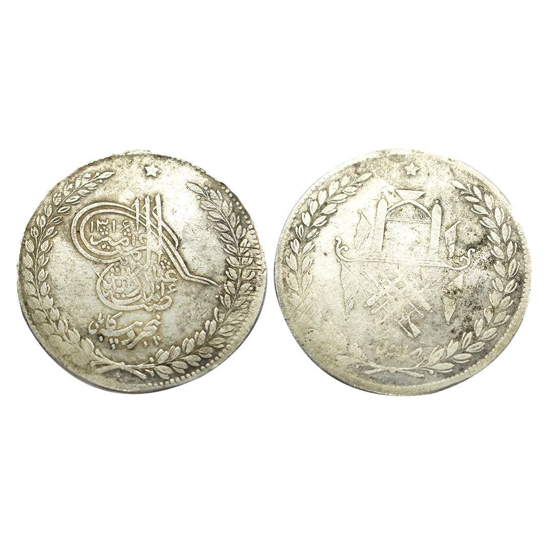 Foreign Coins, Afganistan, Abdur Rahman (c. 1880-1901 AD), Silver 5 Rupees, 45.63Grms, Kabul Mint, Obv: Star above Toughra that divides the date within a wreath, Rev: Mosque with crossed flags. (KM # 826).