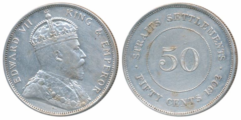Straits Settlements, Edward VII, Silver Dollar, 1902, rev. artistic design within circle (KM 26). Very Fine+, Scarce.