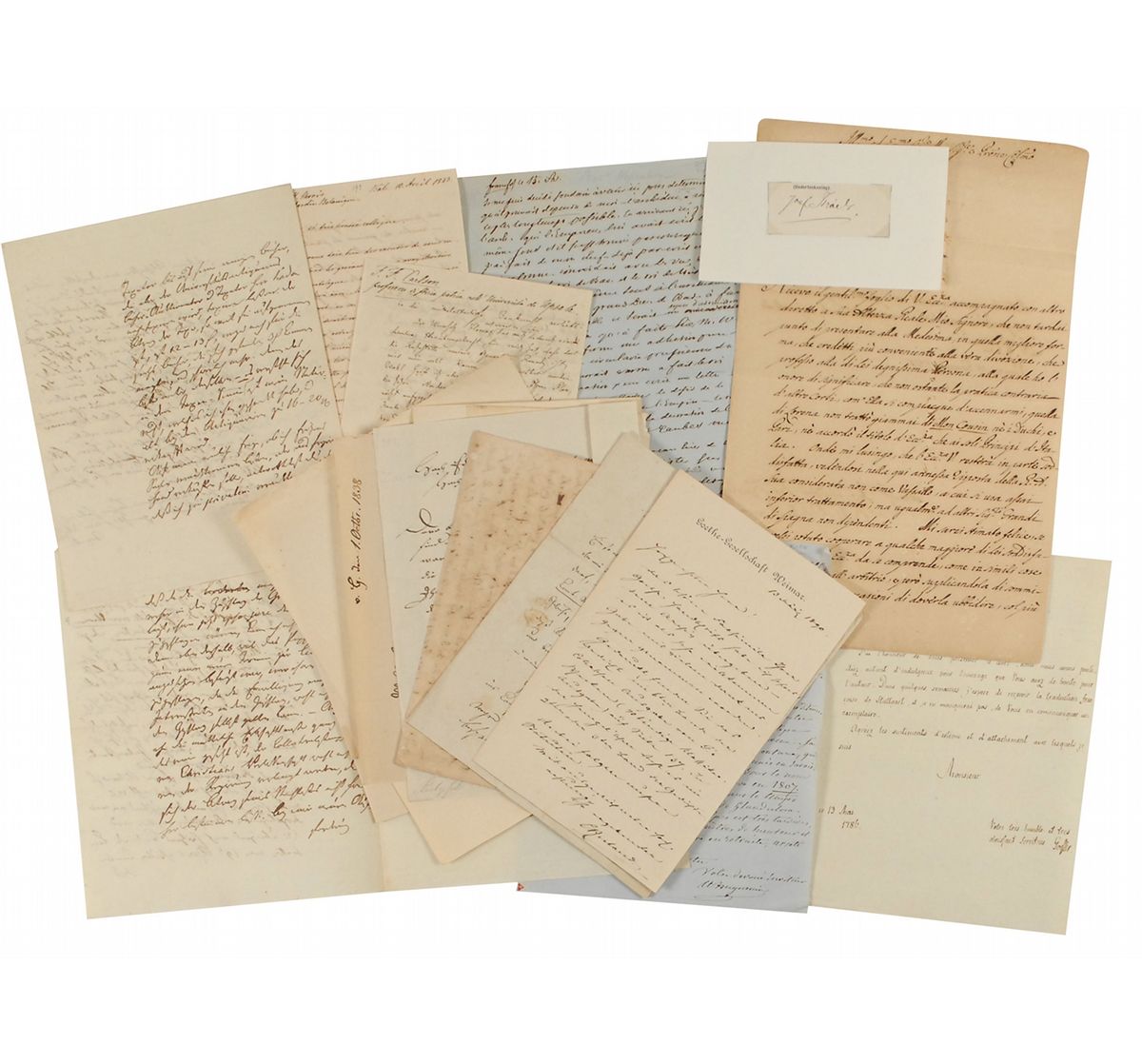 Collection of 17 letters in German signed by various notable figures from a variety of fields, the majority written during the mid-19th century. Signers are: Berlepsch, Arnold Adolph Berthold, Fredrik Ferdinand Carlson, Johann Hinrich Gossler, Johann Christoph Hoffbauer, Adele Huguenin, Jozef Israels (signature), Koch, C. Meisner, K. Pfretzschner, Rosenbusch, Carl Ruland (2), Johann Baptist Schels, Carl Friedrich Solbrig, Johann von Wessenberg, and Anton Westermann. In overall very good to fine condition.
