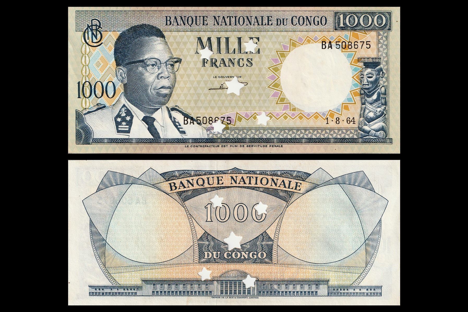 1983-1990, 1000 Francs, 1964, Obv- Portrait of Kasavubu. Rev- Building. UNC, Scarce. NR-42.