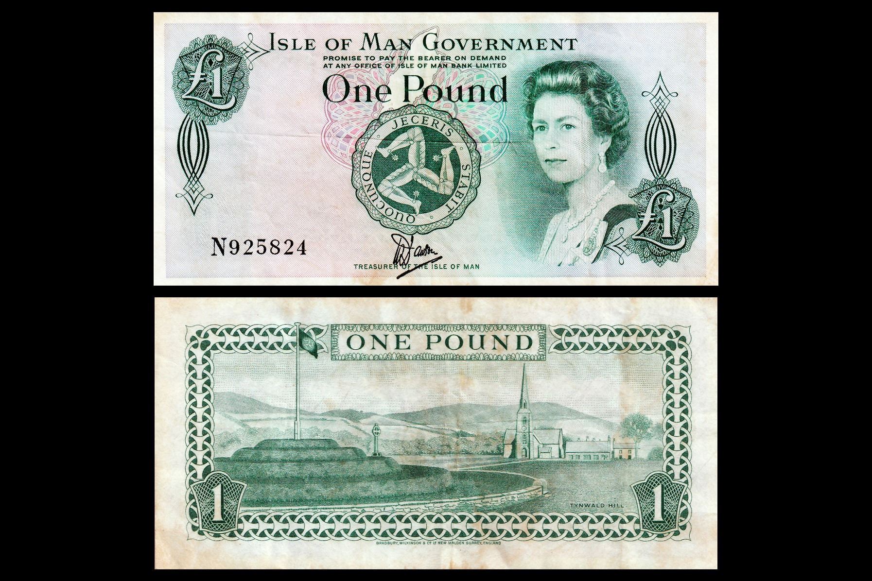Isle of Man (British Crown dependencies), 1 Pound, 1983, Obv- ISLE OF MAN GOVERNMENT, Elizabeth II. Rev- TYNWALD HILL. UNC, Scarce. NR-48.