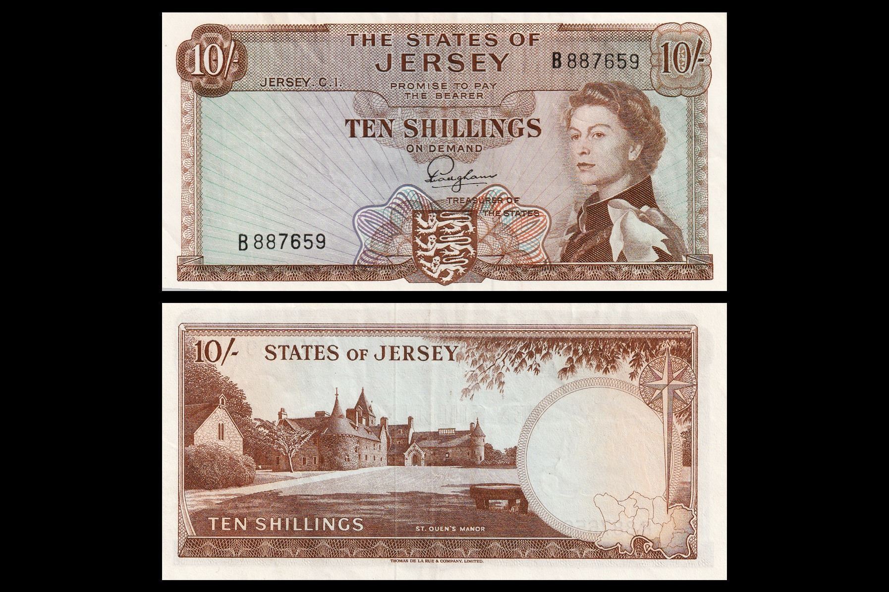 Jersey (British Crown dependencies), 10 Shillings, 1963. Obv- Queen Elizabeth II at right. Rev- St. Ouen's Manor. UNC, Scarce.