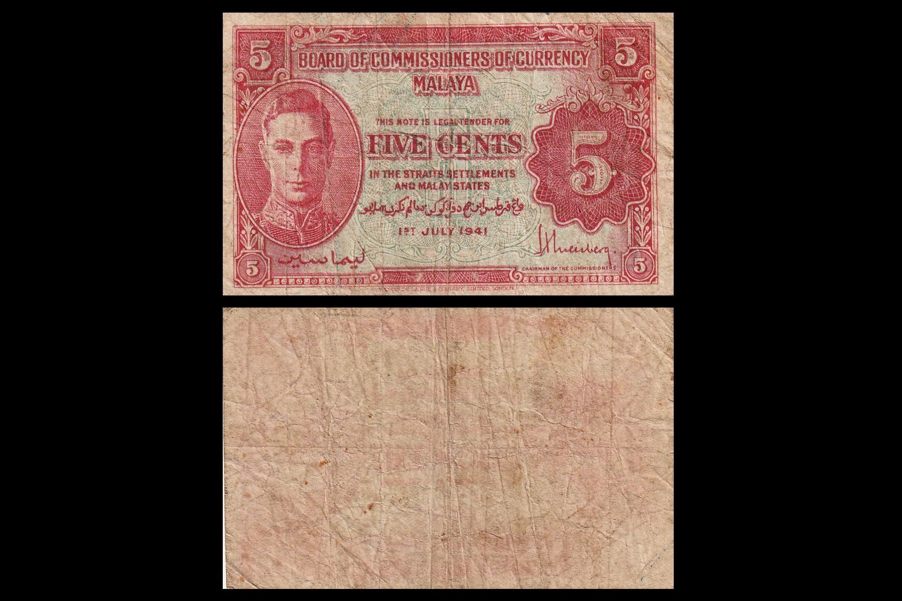 Malaya (Malaysia), 5 Cents, 1941, Obv- Portrait of King George VI. Rev- blank. VF+, Scarce. NR-49.