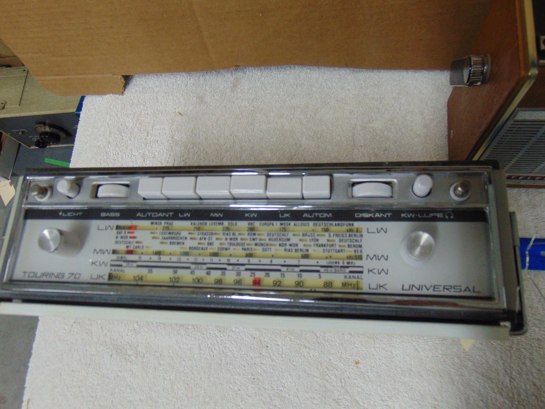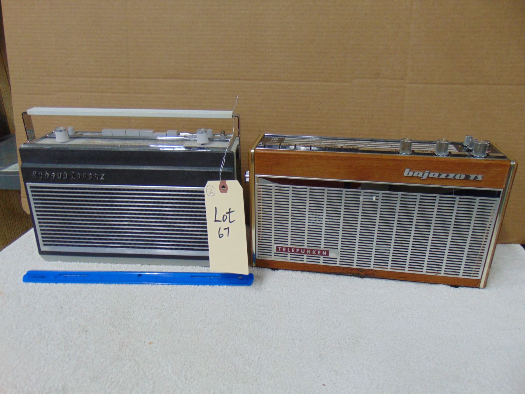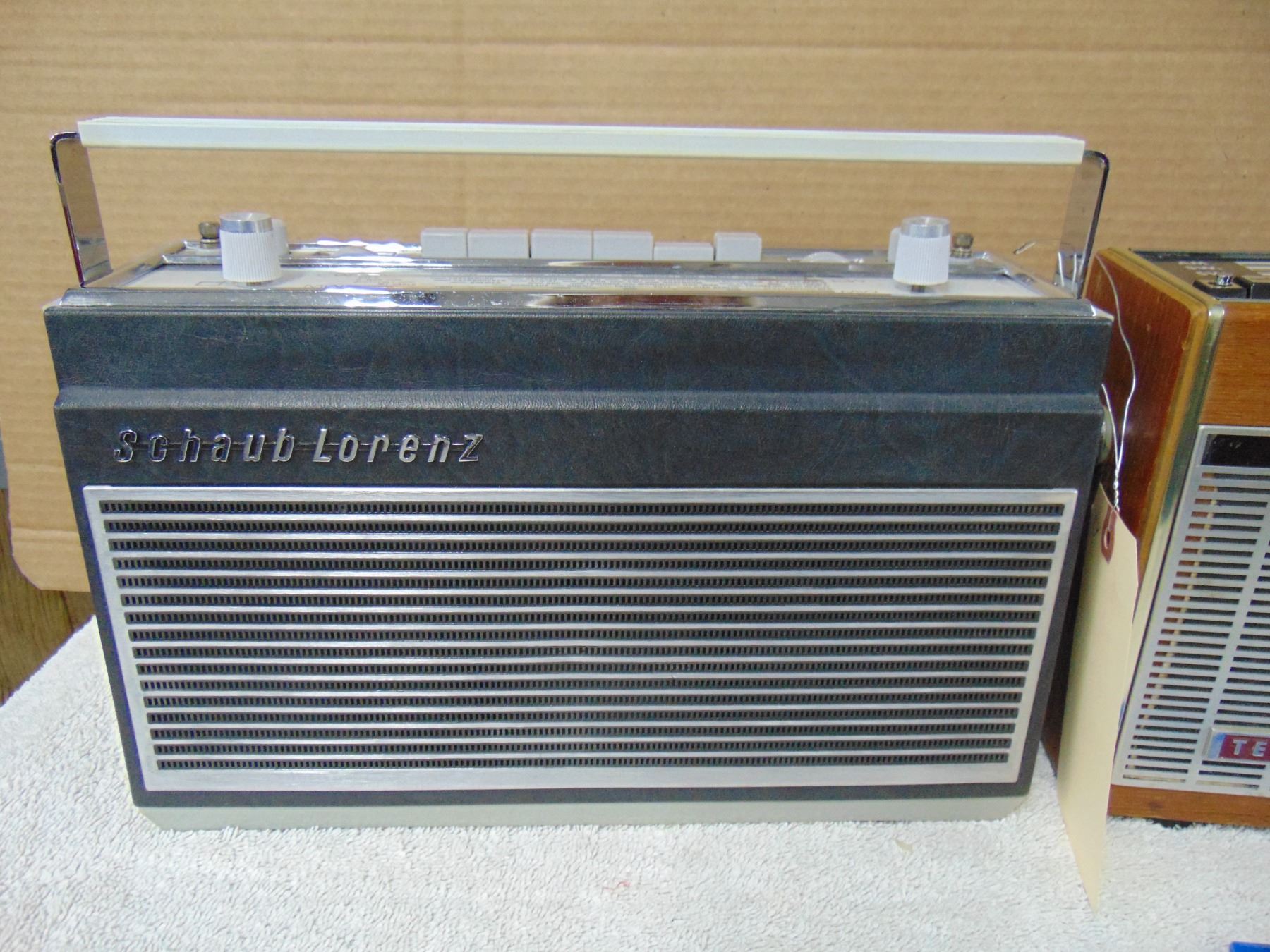 Two transistor portable radios: Telefunken Bajazzo TS, battery compartment is rusty; ALSO, Schaub Lorenz Touring 70 Universal, very nice; both multi-band