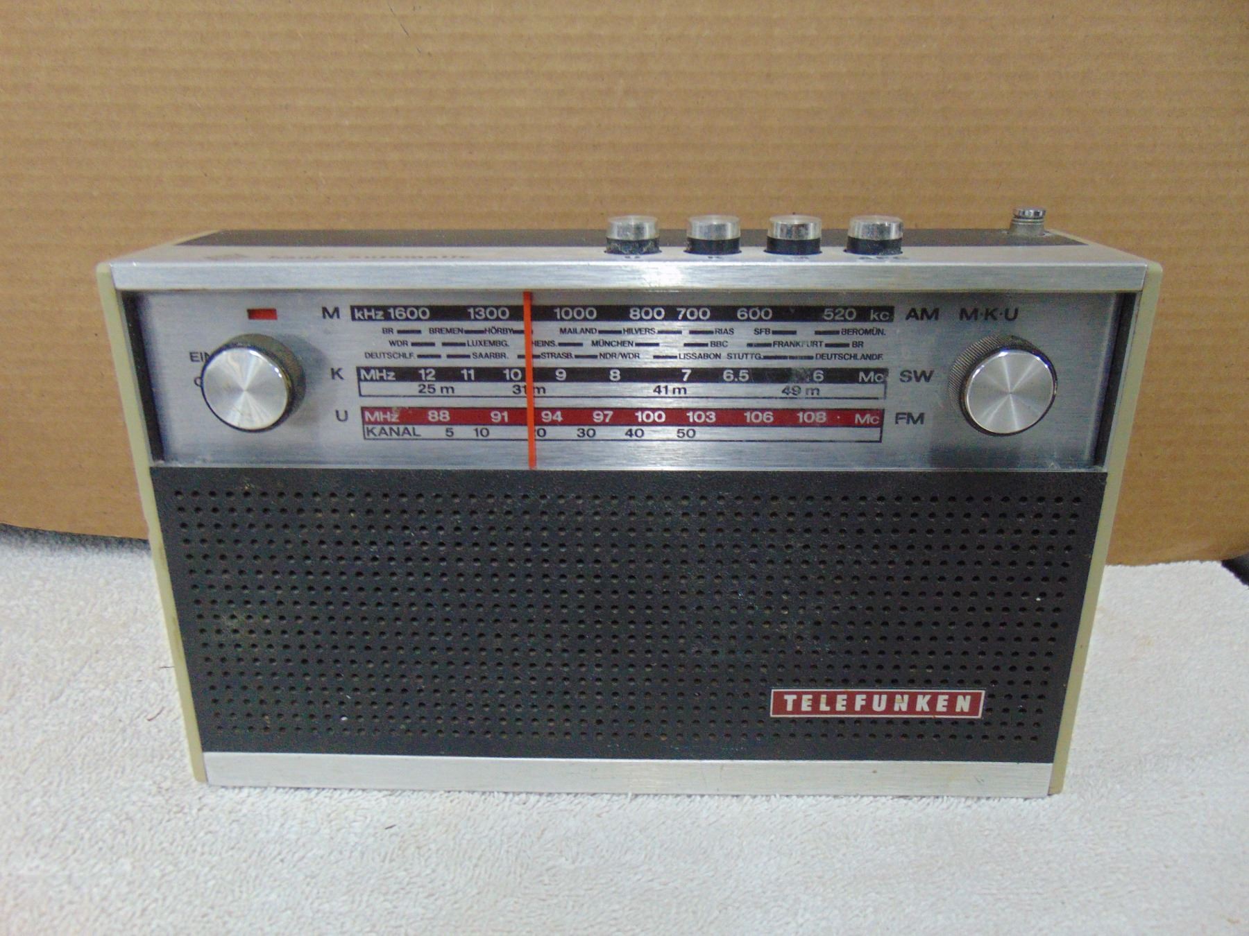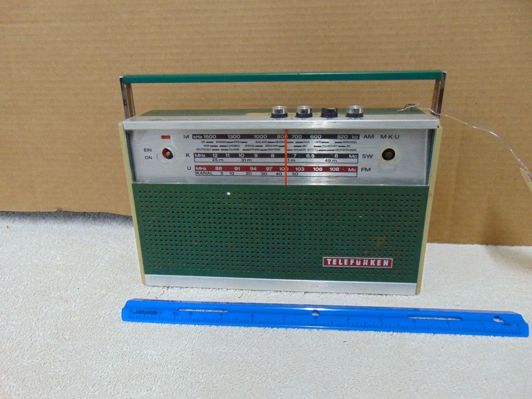 Two Telefunken Banjo Automatic transistor portables; one black, one green