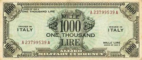 Foreigner Occupation in Italy - - - II Guerra Mondiale - Occupazione militare alleata - Banconota da 1000 Lire 1943 - Emissione bilingue Zecca: - Diritto: - Rovescio: - Vari difetti di circolazione - Da esaminare