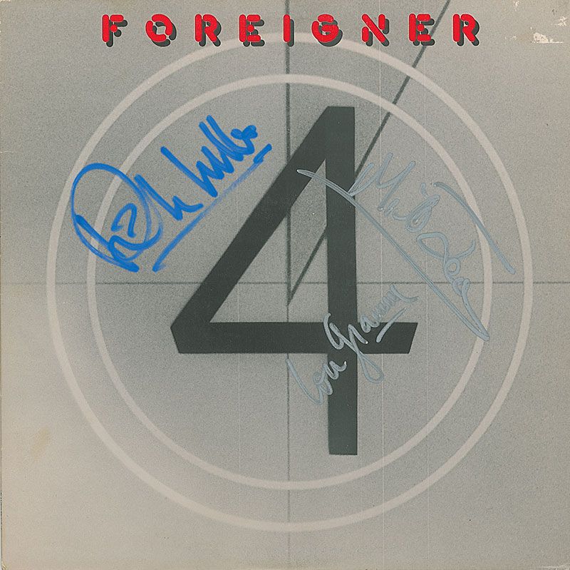 4 album signed on the front cover in silver ink by Lou Gramm and Mick Jones and in blue ink by Rick Wills. In fine condition, with a label remnant to top right corner of front cover. The record is included.