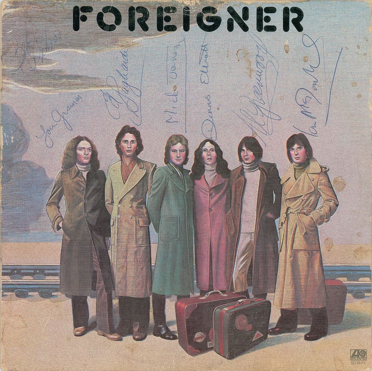 Self-titled debut album signed on the front cover in black ballpoint by Mick Jones, Lou Gramm, Dennis Elliott, Ed Gagliardi, Al Greenwood, and Ian McDonald, with one adding a sentiment to the upper left corner. In very good to fine condition, with scattered spotty staining. The record is not included. Accompanied by a full letter of authenticity from REAL.