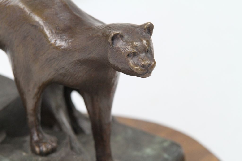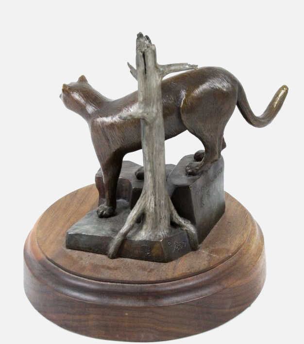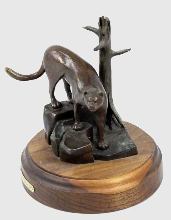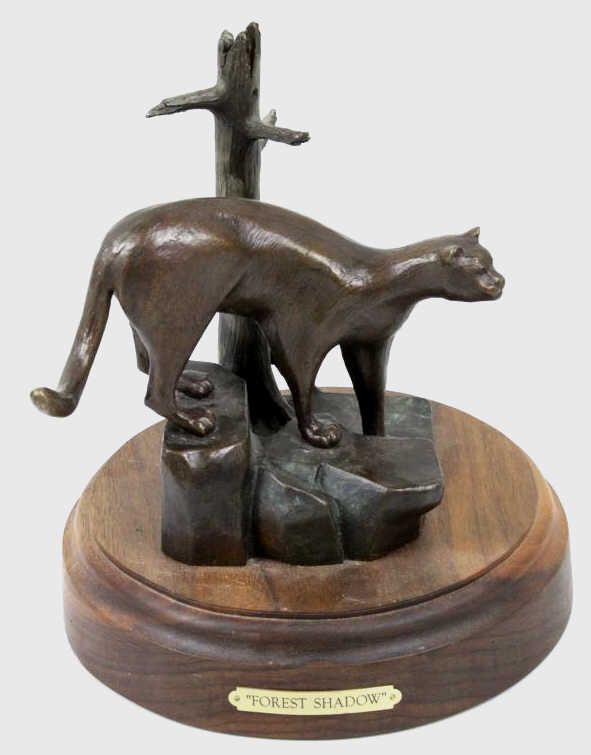 "Forest Shadow" by R. Kruckenberg This is a Bronze sculpture of a Mountain Lion. Measures 9" long x 9.5" tall.