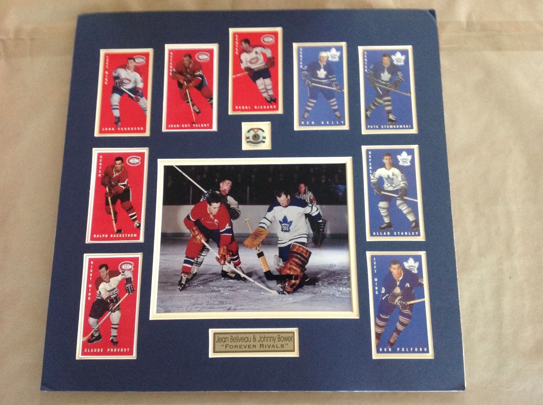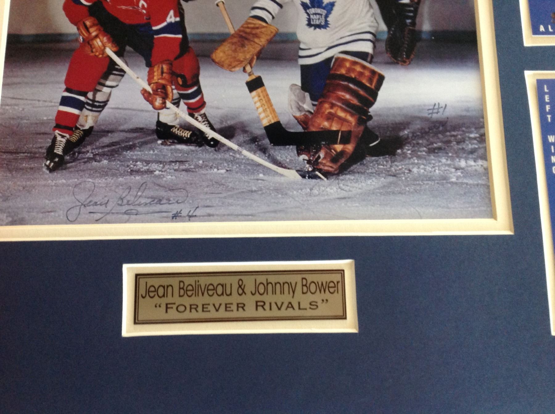Montreal Canadiens and Toronto Maple Leafs Collection Autographed by Jean Beliveau & Johnny Bower unframed 20" x 20"