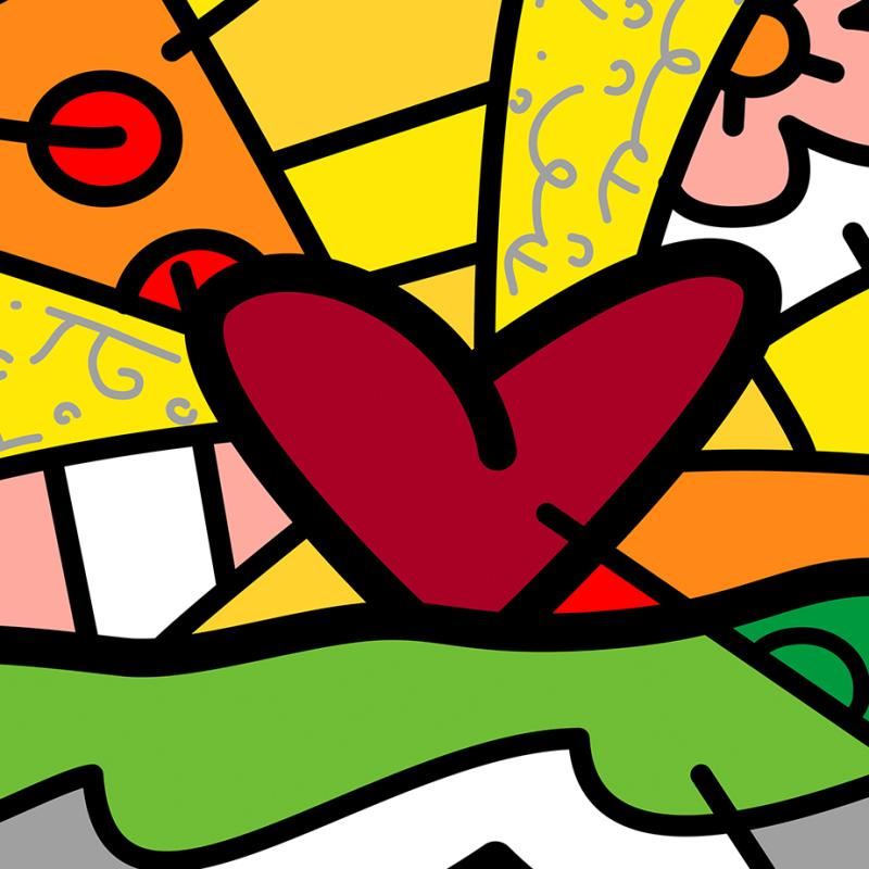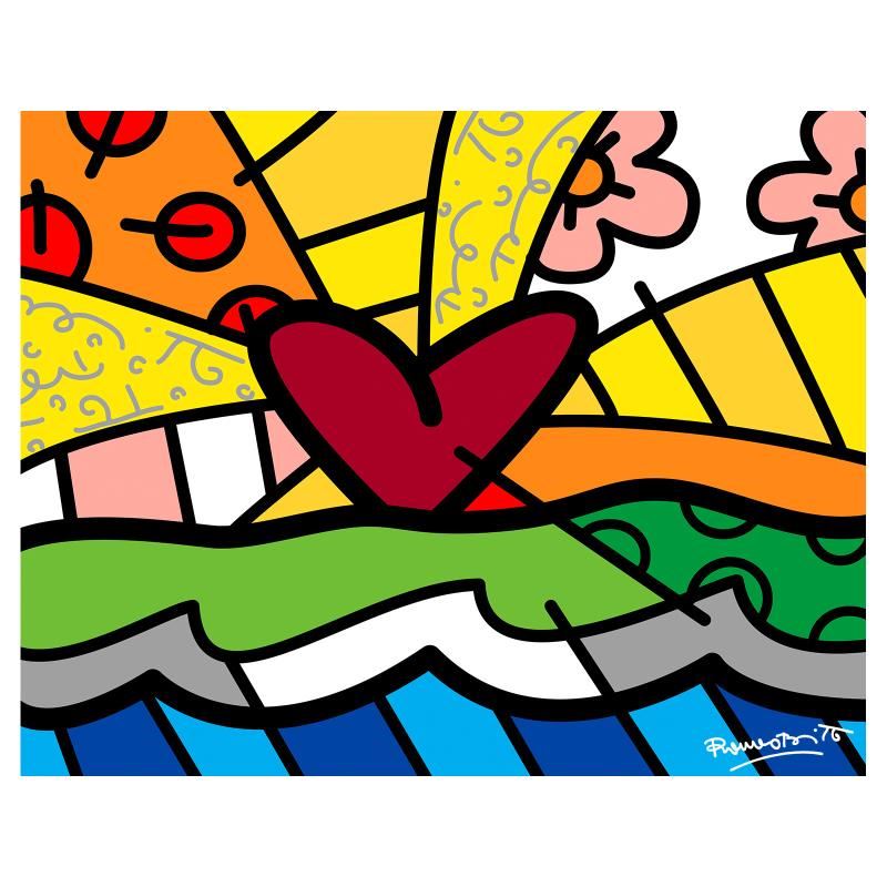 "Forever" is a limited edition giclee on canvas by Romero Britto. The piece is numbered, hand signed by the artist, and comes with a Certificate of Authenticity. Measures approximately: 30" x 24".