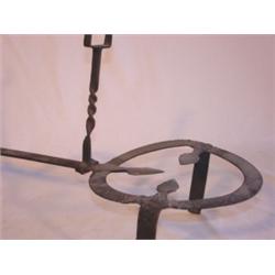 Forged iron kettle stand. Measures 26" long and 12 1/2" tall.