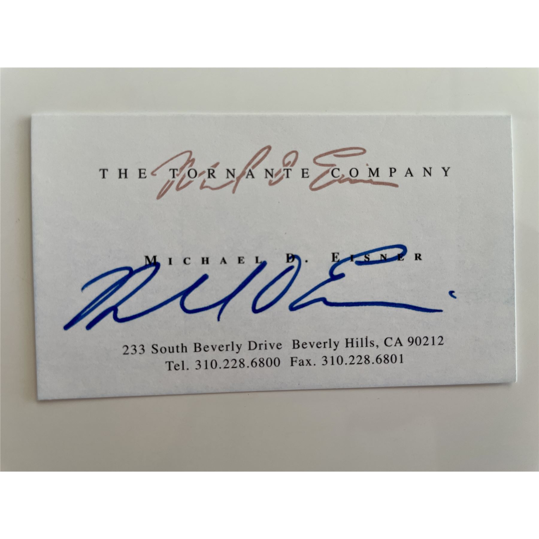 Former Disney CEO Michael Eisner signed business card. 2x3inches