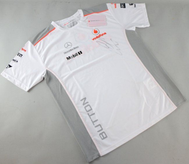 Formula 1, a Jensen Button Vodafone McLaren Mercedes signed Team T Shirt, with tag unworn, Size L