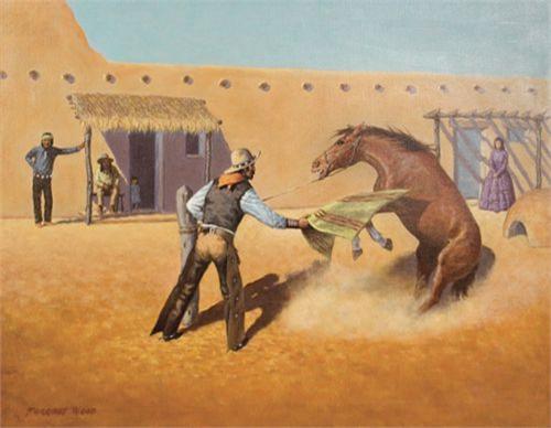 Forrest F. Glyn (1905-1974). "The Mustang". 22" x 28". Oil on Canvas. Fine condition. (est $2,000-3,000)