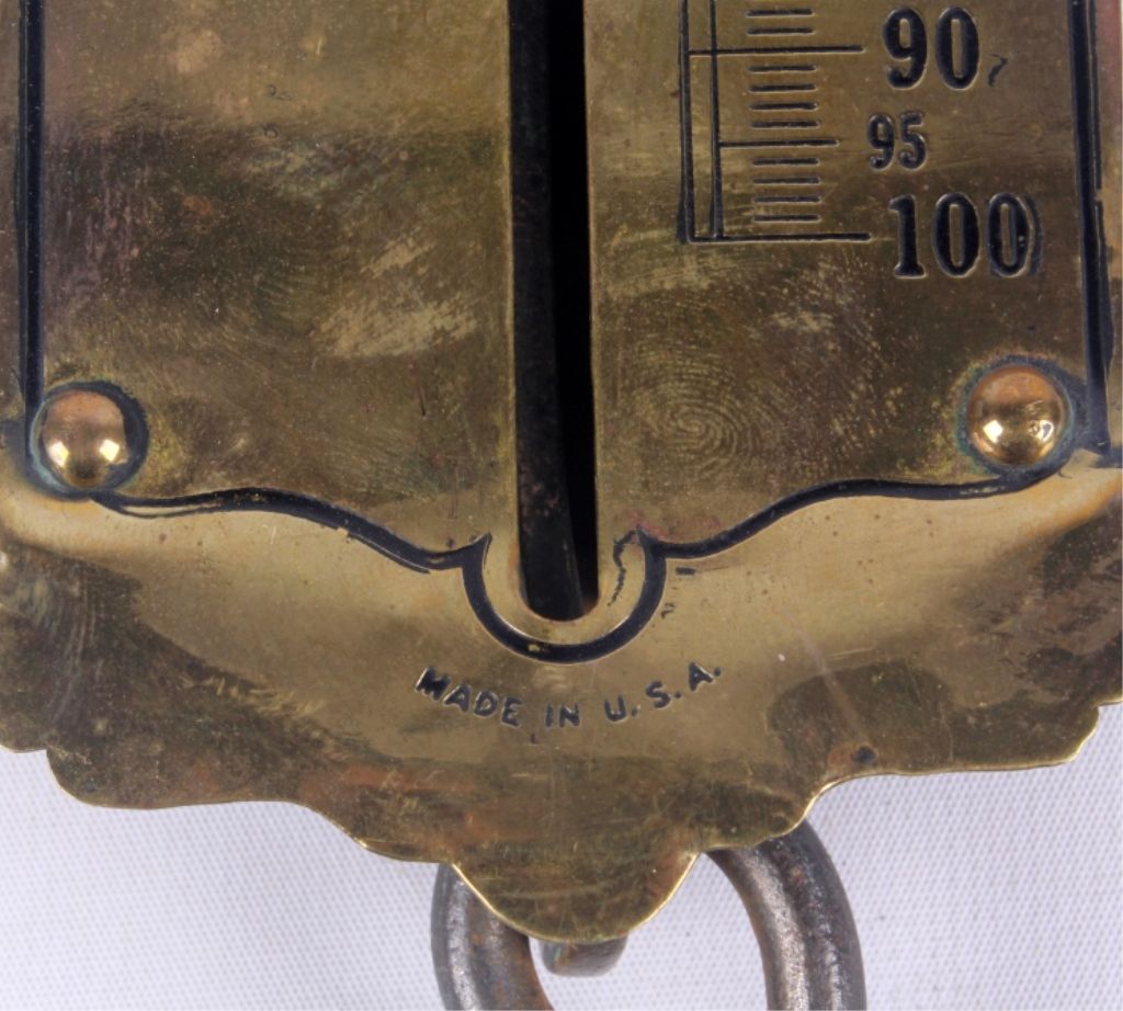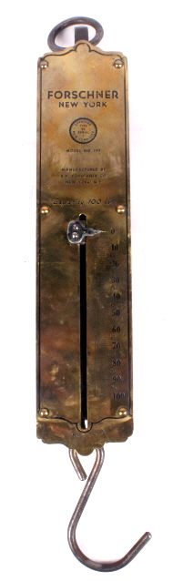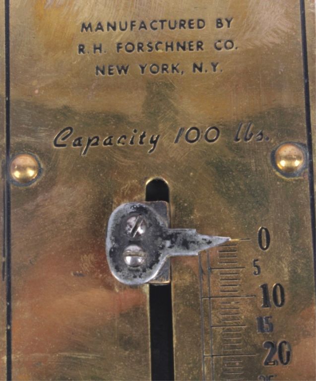 This lot features an antique Forschner brass scale. It has a great polished face for decorative purposes. It also functions well for practical use. The scale measures 2.75" x 13".