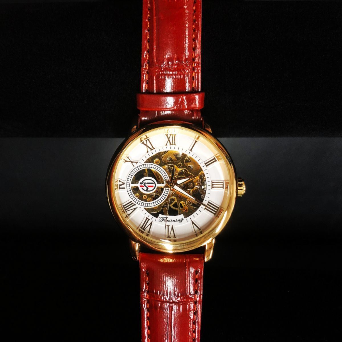 An Automatic Forsining Wrist Watch Skeleton Dial with Mechanical Movement. Has Stainless Steel Case and Luxury Band. View Photos For Further Details