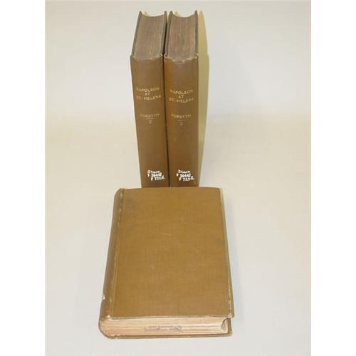 Forsyth, William. History of the Captivity of Napoleon at St. Helena; From the Letters and Journals of the Late Lieut.-Gen. Sir Hudson Lowe, and Official Documents Not Before Made Public - 3 Volumes. London: John Murray, 1853. First Edition. 8vo - over 7¾" - 9¾" tall. Hard Cover. Ex-Library. Fair to Good Condition. xii, 495pp; iv, 490pp; vi, 529pp in library buckram. Includes 2 (of 3 frontis), lacks map. Binding & hinges tight, one signature spring