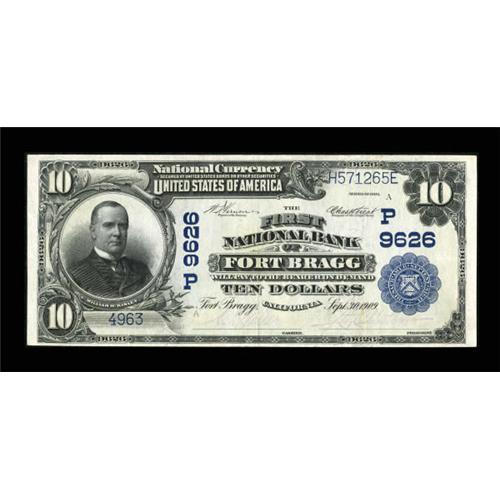 <B>Fort Bragg, CA</B></I> - $10 1902 Plain Back Fr. 626 <B>The First NB</B></I> Ch. # (P)9626<BR> This note bears the first title used here, and is, by a considerable margin, the finest example known bearing either of the two titles used on large notes. Bright <B>Very Fine+++, </B></I>with light but visible purple signatures. <BR><I>From The Kansas City Collection.</B></I><BR><BR><b>Shipping:</b> Coins & Currency (<a target="_blank" href="http://www.heritageauctions.com/common/shipping.php">view shipping information</a>)