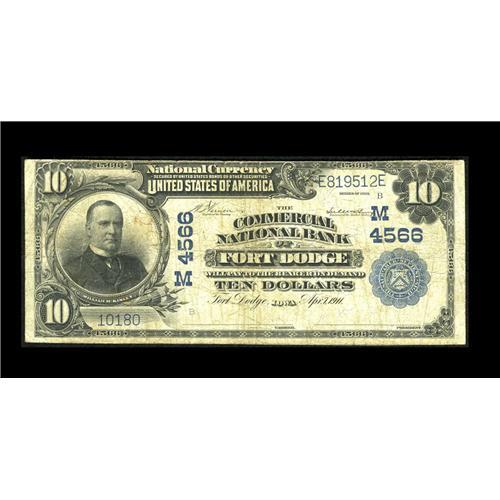 <B>Fort Dodge, IA</B></I> - $10 1902 Plain Back Fr. 627 <B>The Commercial NB</B></I> Ch. # (M)4566<BR>This $10 is problem free for the grade while the signatures have faded away. <B>Fine.</B></I>