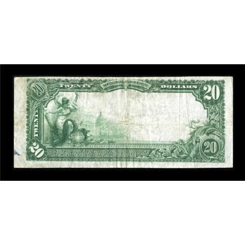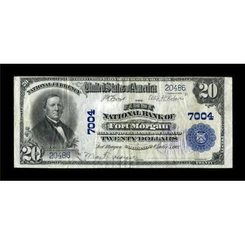 <B>Fort Morgan, CO</B></I> - $20 1902 Plain Back Fr. 650 <B>The First NB</B></I> Ch. # 7004<BR> Do not pass over this pleasing $20, as it is the only large size note to come to auction since 2001. It is a lightly circulated issue with pleasing paper quality, though a couple pinholes are noted. The signatures remain, including that of the president which is well into the design and seal. <B>Very Fine.</B></I><BR><BR><b>Shipping:</b> Coins & Currency (<a target="_blank" href="http://www.heritageauctions.com/common/shipping.php">view shipping information</a>)