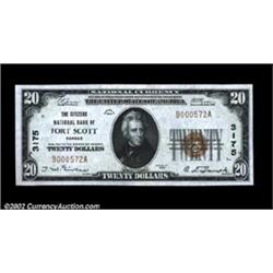 Fort Scott, KS - $20 1929 Ty. 1 The Citizens NB Ch. # 3175Well centered Gem Crisp Uncirculated. Important notice: We expect to be auctioning lots at the rate of 200-250 per hour. Sometimes eBay Premier live bid software cannot keep up with that pace, so we strongly recommend that you place a realistic proxy bid now as insurance to avoid disappointment. Also please note that all Heritage/CAA lots purchased through eBay Premier carry a 20% Buyer's Premium. Please make sure you read the Terms and Conditions.