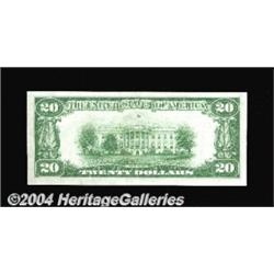 Fort Smith, AR - $20 1929 Ty. 1 The First NB Ch. # 1950One of a pair of utterly original gem examples from this bank offered in this sale. This is by no means a common note in this grade. Gem Crisp Uncirculated. <BR><BR><B>Important notice:</B> Heritage usually auctions material at the rate of 200-250 lots per hour. On some occasions eBay Live bid software or the Internet may not be able to keep up with the pace of the auction. We recommend placing a realistic absentee bid now as insurance to avoid disappointment. Occasionally the auctioneer may eliminate or reject an eBay Live bid, and the auctioneer may also reopen a lot after the close of the eBay live bidding (usually because we missed an audience bid), and may reject your bid even if it shows you as the winning bidder. By bidding via eBay Live, you agree that Heritage may award the lot to another bidder at its sole discretion under the circumstances described above or any other reasonable circumstances. Since eBay bids are not shown to us until we open the lot on the floor, we treat those bids just like floor bids. In most cases the floor responds before the eBay bid is presented to us, due to Internet lag time, so for consistency we have made it a policy that floor bids are always considered first over tie eBay live bids. Also please note that all Heritage lots purchased through eBay Live carry a 20% Buyer's Premium. Please make sure you read the Terms and Conditions before you bid. <BR><BR><B>IMPORTANT ANNOUNCEMENT ABOUT RESERVES:</B> Heritage now divulges all reserves on its web site 7 days before every auction. If you want to know whether the reserve on this lot has been met, and if not, what the reserve amount is, please visit this lot page on the HeritageCoin.com web site, or email: bid@HeritageGalleries.com