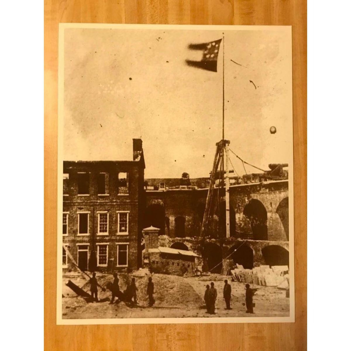 Newer creation, early 1990's sepia-tone photo print on heavy cardstock. Fort Sumter during the Civil War, 1860's. 11" X 14".Â