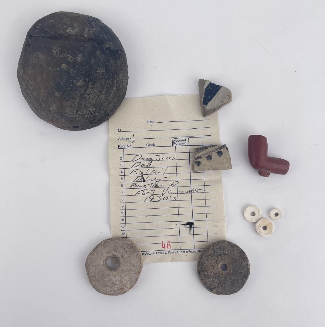 Very nice grouping of artifacts. Note states that they were found at Fort Vancouver.